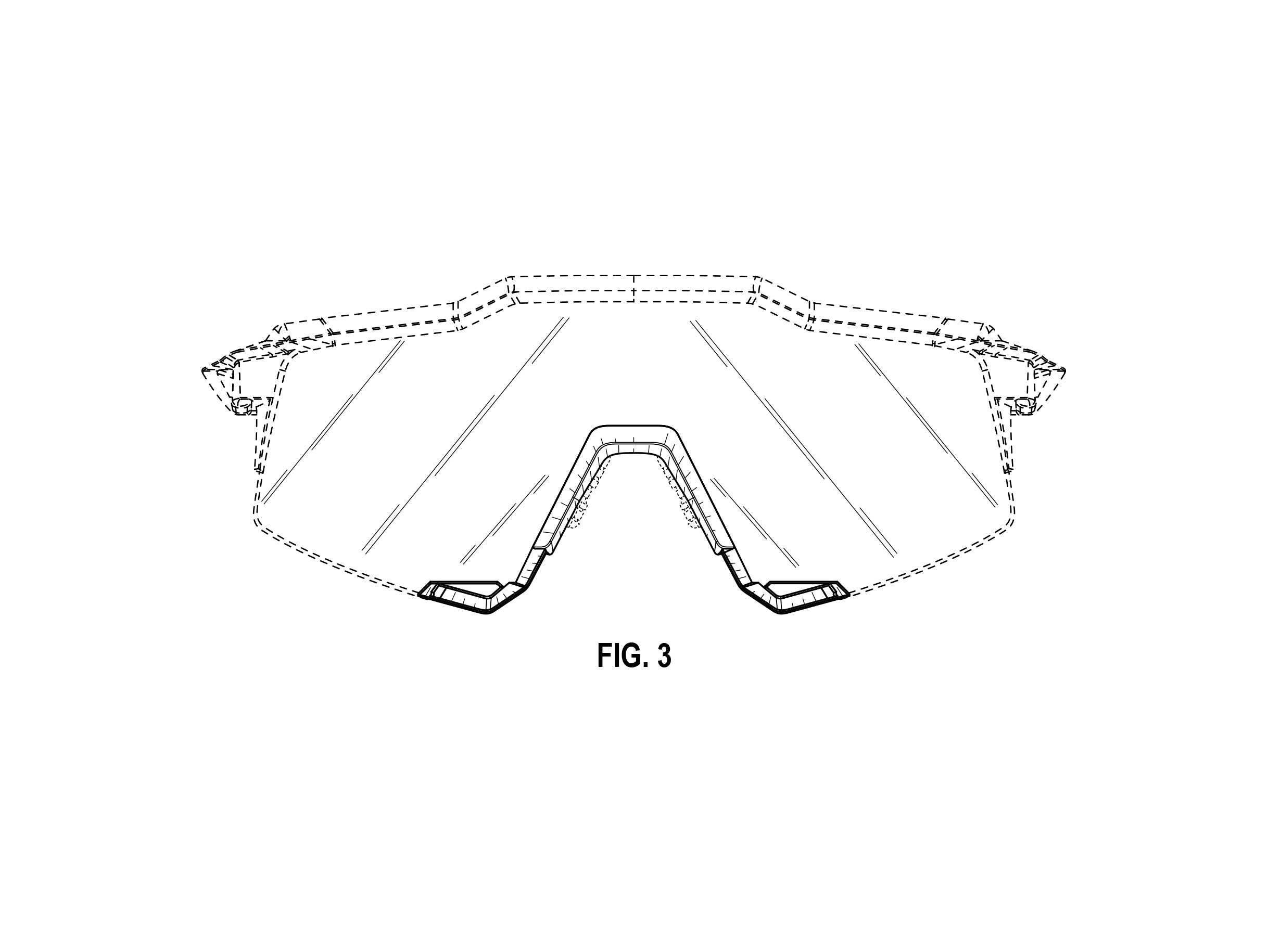Our most recognizable protection may be the rights in our 100% bump. Use of this consistent shape on several goggle and sunglasses styles has created a “100% look”. The eyewear bump shape is visual information that communicates the origin of the goods, conveying our stringent style and safety standards.